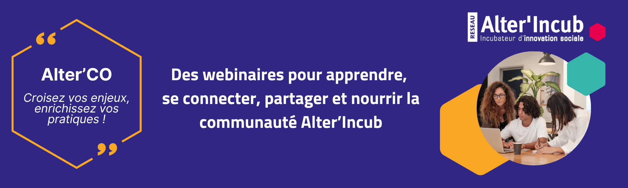 Ce programme, baptisé Alter’CO, est bien plus qu’une simple succession de webinaires : c’est un espace de ressources et d’échanges pensé pour grandir collectivement. Avec pour ligne directrice « Croisez vos enjeux, enrichissez vos pratiques ! », Alter’CO a pour ambition de favoriser l’apprentissage mutuel, de stimuler les partages d’expérience et de nourrir la vitalité de toute la communauté Alter’Incub.